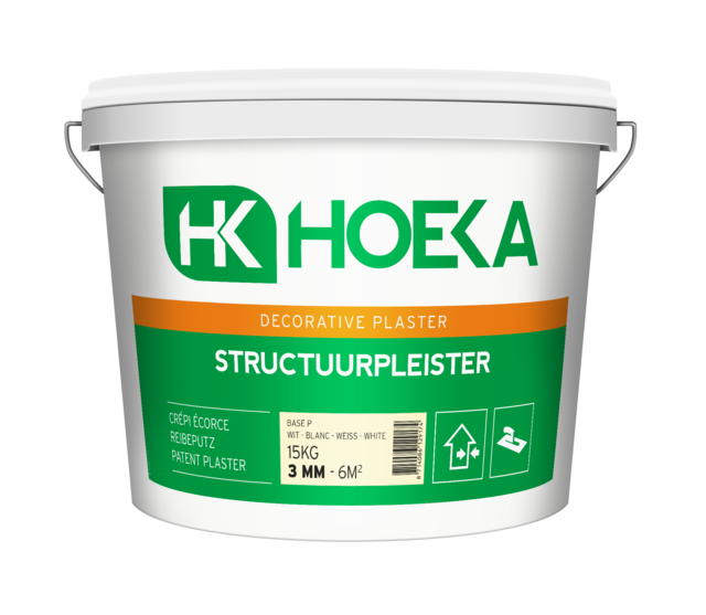 Durable, excellently adhering, synthetic resin-bound decorative plaster with bark structure.